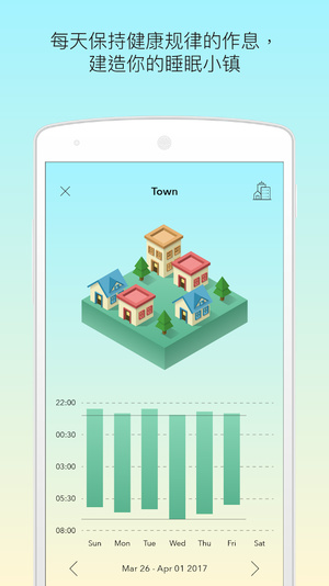 - 在城市页面中欣赏你所建造的睡眠城镇,以及简单明了的睡眠历史记录。
