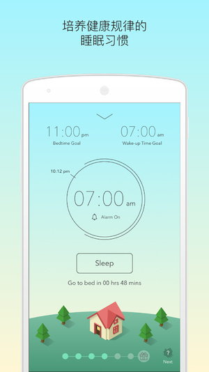 2) 每天在就寝目标时间前开启 app,开始建造房屋