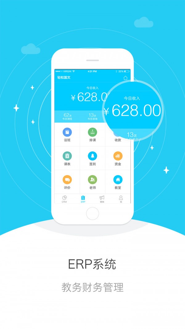 天校app的ERP—教务财务管理系统,帮助机构实现教学、教务、财务一体化,完成多校区信息化,提高管理效率;