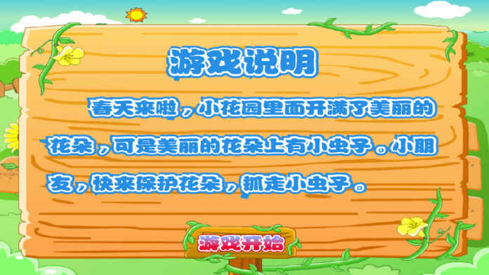 春天来了,小花园里开满了美丽的花朵,可是美丽的花朵上会有小虫子。小朋友,快来帮巧虎保护花朵,抓走小虫子吧。