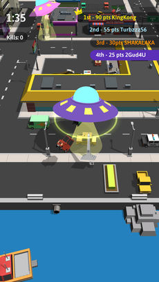 2、吞噬地面上所有的提挈,来扩张你的飞碟。