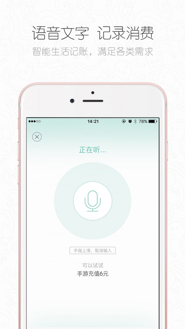 1·智能语音记账——对手机说[昨天打车花了30元],即可轻松记账,自动识别日期、金额、收支、类别、是否报销