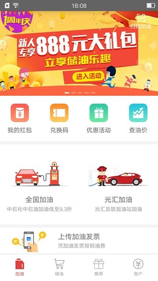 1、储油卡支持充值中石化/中石油加油卡,及合作油站加油