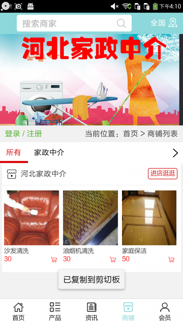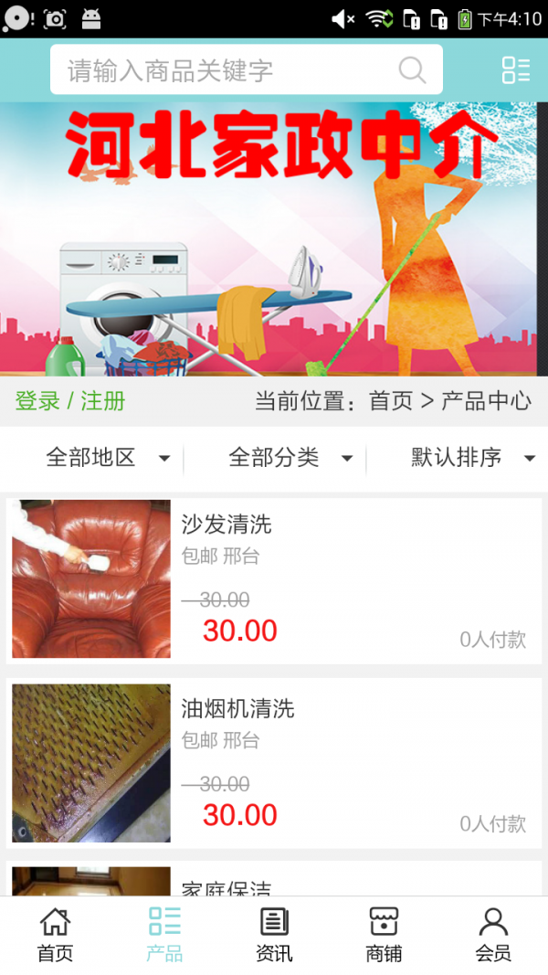 河北家政中介app不仅具备购物、查询订单、搜索商品、行业资讯和产品评价等常用功能,而且还实现了手机版特有的会员注册登录、广告位、招商开店等功能。目标是整合当地品牌商、生产商、经销商,为商家和消费者之间提供一站式解决案。欢迎下载使用!