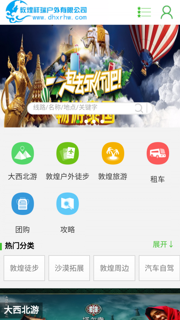 敦煌市祥瑞户外文化发展有限公司将为提供专业户外徒步拓展、沙漠穿越、全地形车赛事、提供全面、快捷、安全的敦煌旅游线路、西宁旅游路线、张掖旅游路线、餐饮、酒店、敦煌租车、会议会务、票务等旅游服务,在这里您将享受到一站式的管家服务。