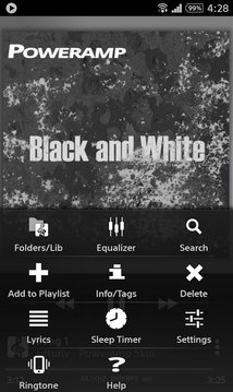 After the installation, open PowerAmp > Settings > Look and feel > Skin > choose Black and White Skin.