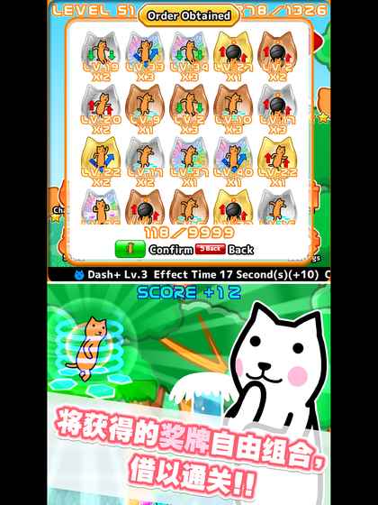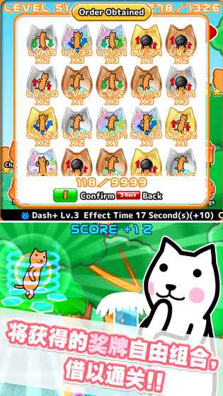 在关卡内取得的各种奖牌可在关卡选取画面时自由设置至五个插槽中!关卡进行时触碰已设置的奖牌,便可随时开启/关闭其效果!