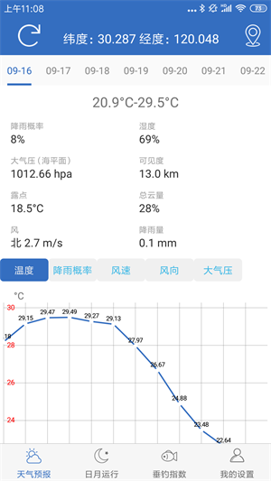 钓鱼天气预报软件提供最近一个星期每小时天气预报。