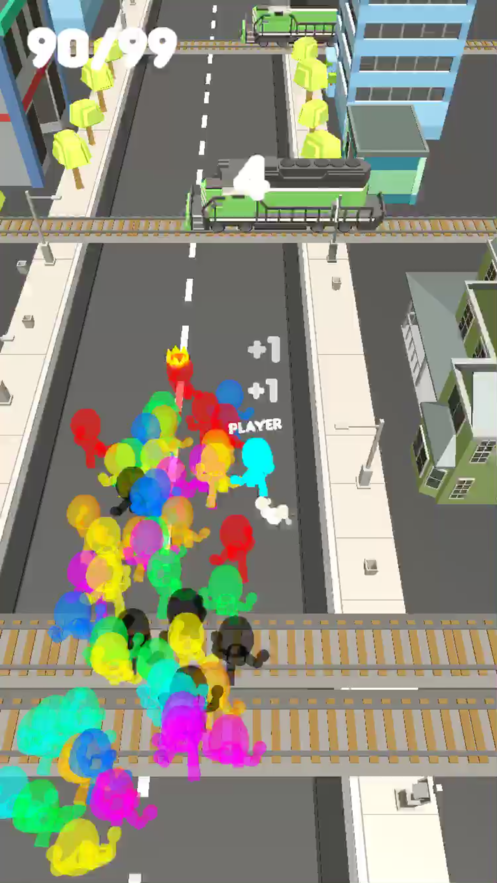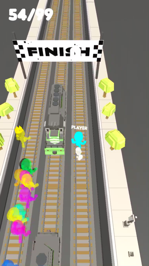 Human vs Train是一款多人竞技休闲手游,游戏中玩家们需要在布满铁轨的道路上跑动追逐,一不小心就会被火车撞而导致游戏结束,时刻注意自己的安全,不要被火车碾成碎片。