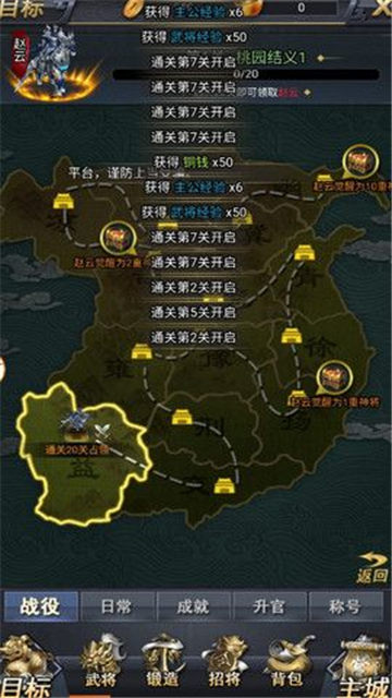 3、震撼刺激的厮杀,闯荡不同的章节关卡,招募武将随你出征,逐鹿中原,完成一番霸业。
