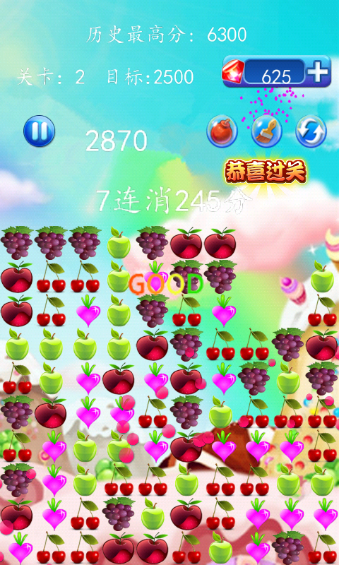 玩家们只需将三个或者三个以上的水果进行消除即可,易于播放界面,只需交换和匹配。 你可以用一只手玩它