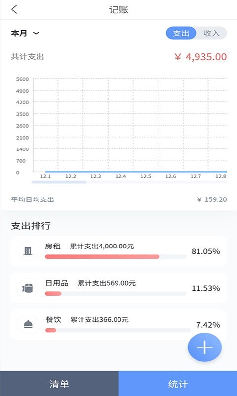 2.可生成报表解析,支出排行百分比平均日支出等信息,让你轻松读懂财务报表,合理控制自己消费水平。