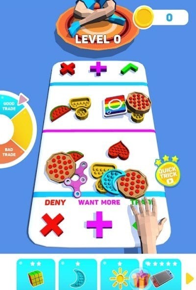 在Fidget Toys Trading游戏中绝对不会出现乱入广告,不会影响玩家游戏体验感。Fidget Toys Trading游戏操作简单,有众多游戏关卡,还有众多游戏道具等你来体验。