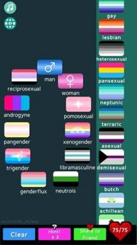 在LGBT Flags Merge中拥有丰富多彩的地图探索,利用多种多样好用游戏道具助你进行英雄有敌的每日任务,女孩要快点儿行动起来,那样不但能够解决单身,还能够有好几个男朋友。