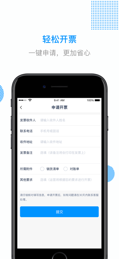 在线一键请求开票,简化流程 即时调阅开票史记,清楚可查。