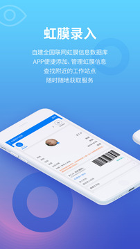 自建全国联网虹膜数据库,APP便捷添加、管理虹膜用户,查找最近的虹膜工作站点,随时随地获取服务。