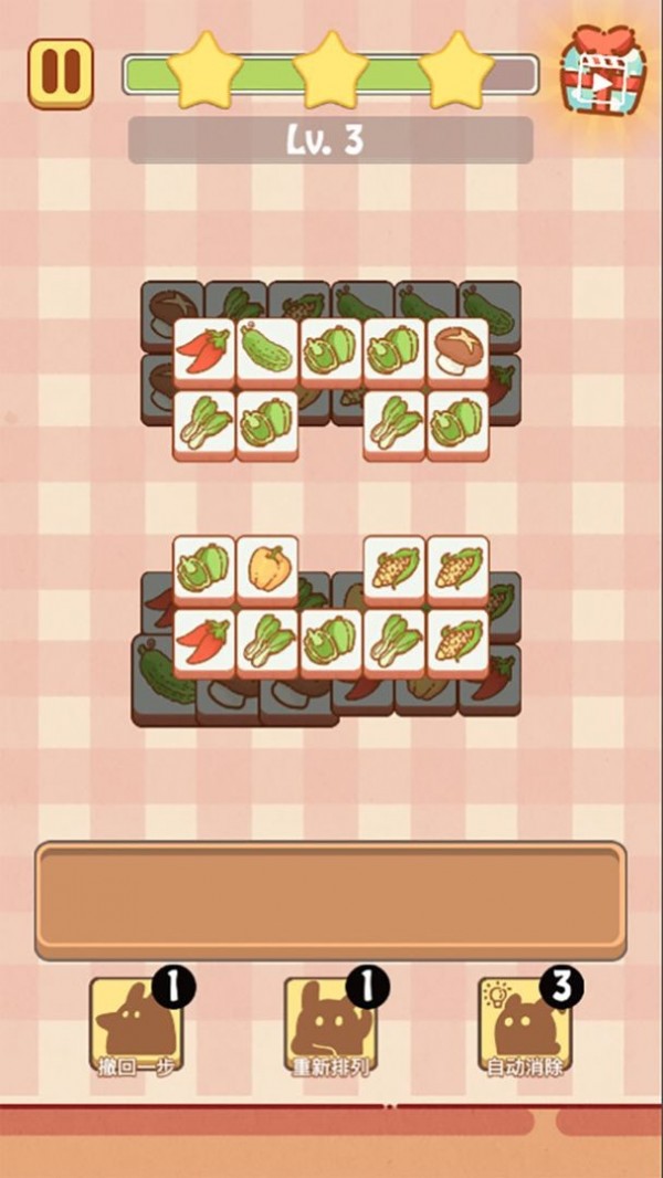 兔了个兔是一款食物消除类游戏,会摆放很多凌乱的食物图片,玩家要找到三个相同的食物进行连接消除,游戏的玩法非常简单,每关的难度会大有不同,越到后面的关卡,内容就会越多越难去操作,不过玩家可以使用道具来进行消除,过关就可以得到对应的奖励。