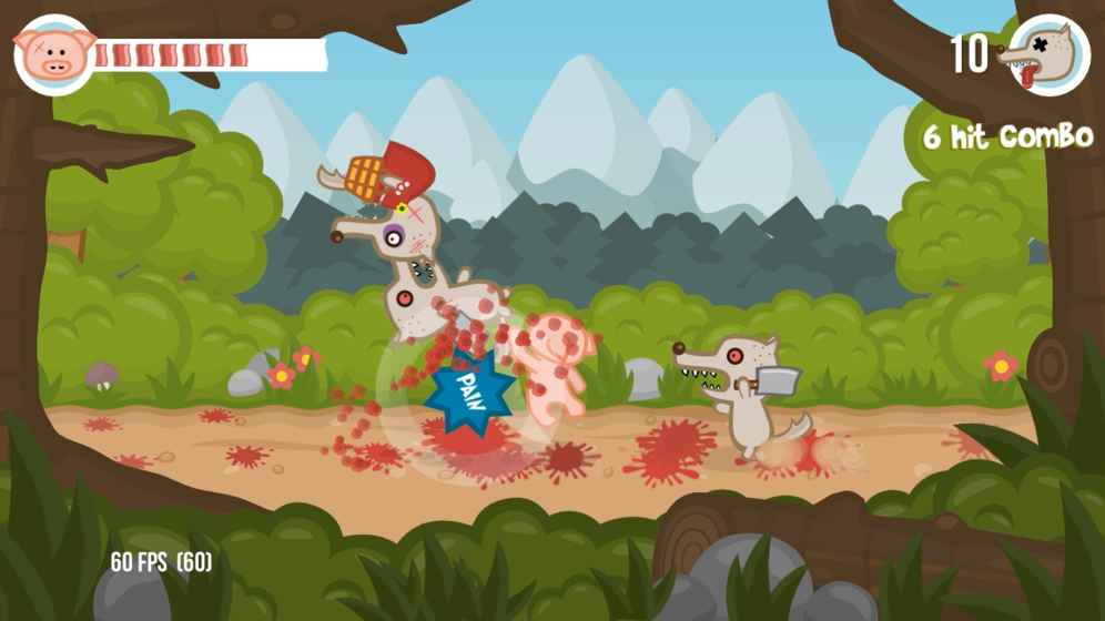 游戏讲述了粉色小猪和一群白狼的故事。游戏玩法很简单,你只需点击屏幕两边就可以让小猪做出出拳或者扫腿的动作,真可谓是简单粗暴。