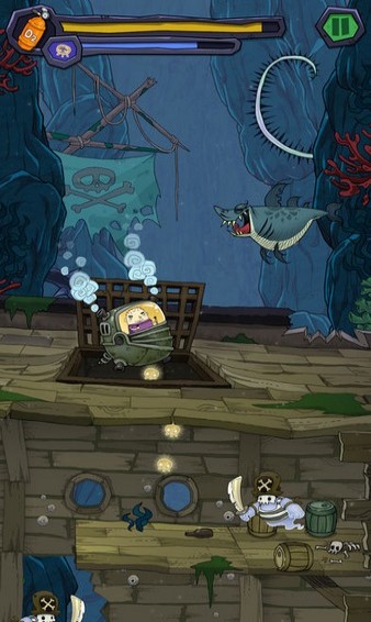 是一款讲在深海中冒险的休闲类游戏。在中,可怕的并非让探险队伍失事的深海巨妖,更可怕的是在路途中出现的守护宝藏的幽灵们,你不知道它们什么时候会出现让你吓一跳。