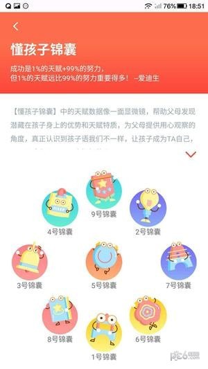 app是一款亲子教育软件,父母可在app为亲子关系做测试报告,app每周、每月都会给父母提供不同的主题教育,而且app还有各种教育孩子的锦囊妙计哦~
