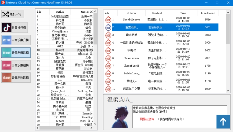 一键获取网易云排行榜歌曲全部热评..一键获取随机热评