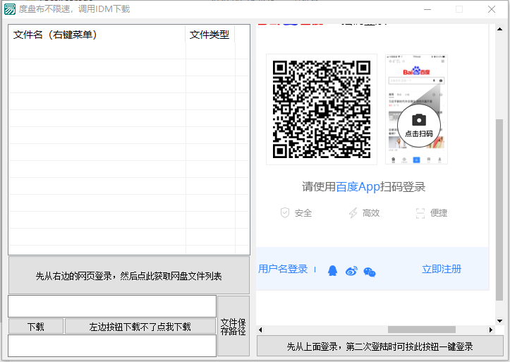 度盘不限速(调用IDM下载)能够帮助使用百度网盘的用户解除下载速度限制,使用百度官方开放的IDM接口绕开检测机制,达到加速的目的。本软件没有官方盘中的开屏广告和界面推广,只需要在内置接入的网页登录界面输入你的个人账号密码,就可以选择你网盘中的所有文件下载,为付费用户带去全速体验,也为免费用户提供可观的速度。