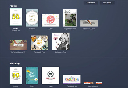 您会发现900多种专业设计的模板,这些模板按类别分类,包括Facebook封面,YouTube频道图片,海报,卡片,邀请函,传单,徽标和横幅。为了使您的设计更加出色和独特,请添加您自己的计算机,Facebook或在线图片库中的照片,并且您还可以选择其他多种资源,包括800多种预设的剪贴画图像,80多种文字字体,30多种预设文字样式,80多种背景图案以及80多种线条和形状。