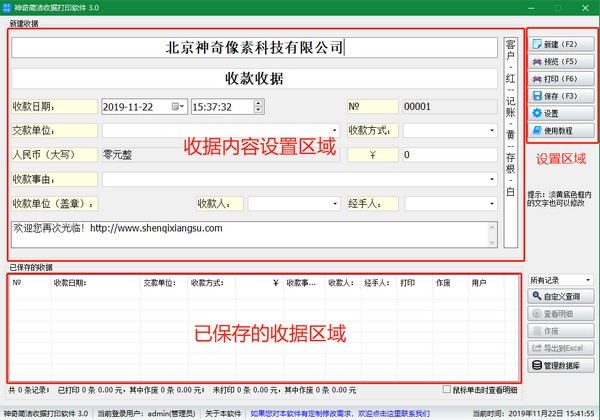 神奇简洁收据打印软件是为广大中心型企业打造的单据打印应用,该工具一打开就是工作界面,尤其是直接显示收据的模板,把打印部分功能移到了右上角,也就是更多支持的部分是内容的处理,在用户输入所有单据的具体数据后会由后台自动保存,以备后续检查核对时候使用,整个过程完成后选择区域内的打印机打印即可。