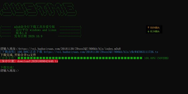 下载的文件没有转为MP4 是一个ts格式的,如果需要请自行下载ffmpeg转换