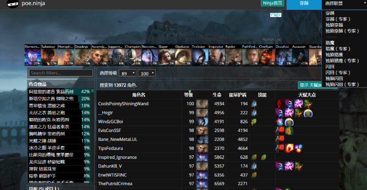 流放之路ninja装备技能汉化插件,一个chrome(谷歌)浏览器插件,可以汉化pathofexile官网帖子或角色详情页面中的装备信息。(新版支持:http://poe.ninja/builds )