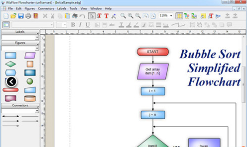 WizFlow Flowcharter 并有其它功能例如全屏幕、OLE 连结、海报打印、图形输入及输出、曲线、流程符号等等。