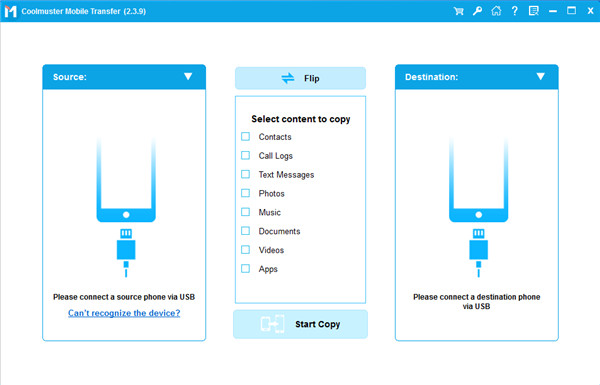 作为在android设备之间传输文件的最佳应用程序,Coolmuster Mobile Transfer是可用的最受欢迎的解决方案之一,也是在Android手机之间传输文件的最快方法,因为它不会失败。导航非常容易,这是它拥有忠实拥护者的另一个原因。Coolmuster Mobile Transfer可以在新旧Android机型上使用,包括三星Galaxy S10 / S10 + / S10e,小米9/9 SE / 8,华为Mate X / Mate 20 / Mate 10 Pro / Mate 10,HTC U11 + / U11,索尼Xperia XZ Premium / XZ1,LG G7 / G6 + / G6,OPPO R11 / R11 Plus / R11s等。