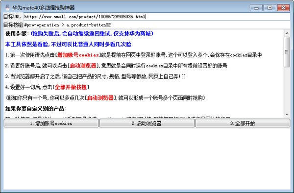 华为mate40pro多线程抢购工具(100%必中)支持您调整商品属性,选择您喜爱的颜色、版本、型号进行自动抢购,比手动更有效率,由于这个新款手机放量不多,想要的用户可以用本工具多线程提升抢购几率。