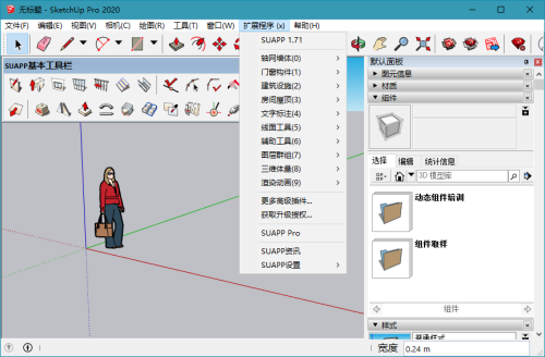 SUAPP Pro插件的定位是给知名的图像处理应用sketchup带来数目众多的滤镜,可在这款应用中安装作为独立的模块来操作,除了足够用户选择的各式滤镜,也设置了很多实用性的功能,其中就有重复对话命令、整体工具栏的功能项设置以及其他三方导入插件的统一管理,适合用于对图像处理需求量比较大的企业。