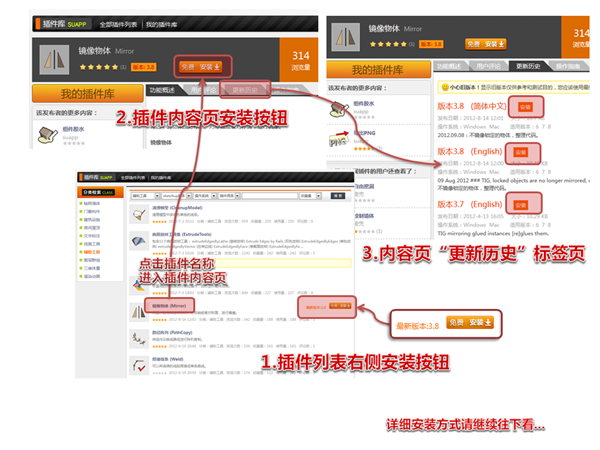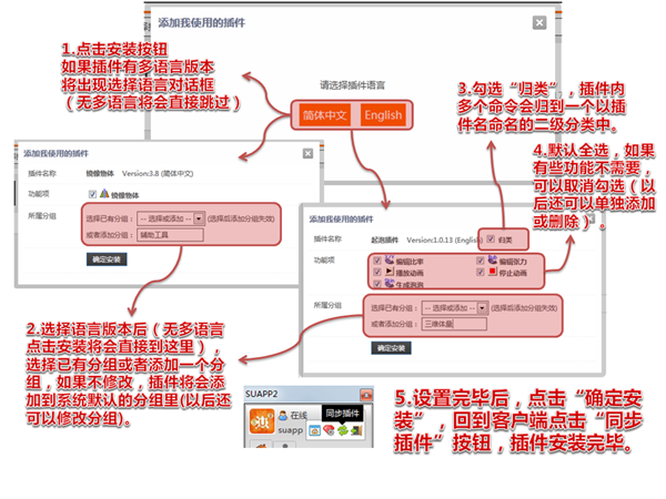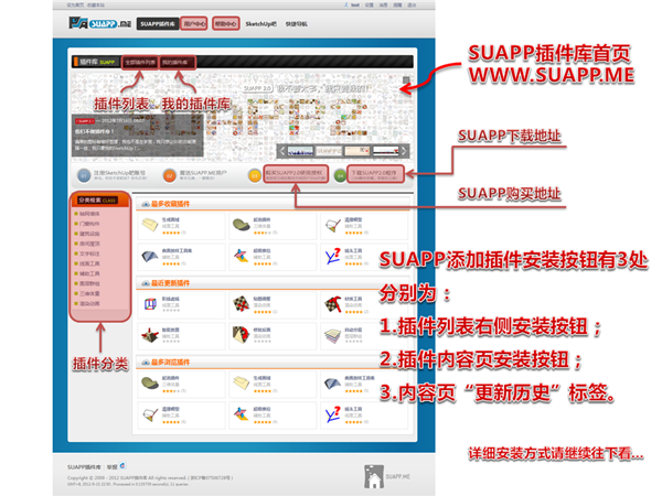 3.SUAPP添加插件安装按钮有3处,分别为: