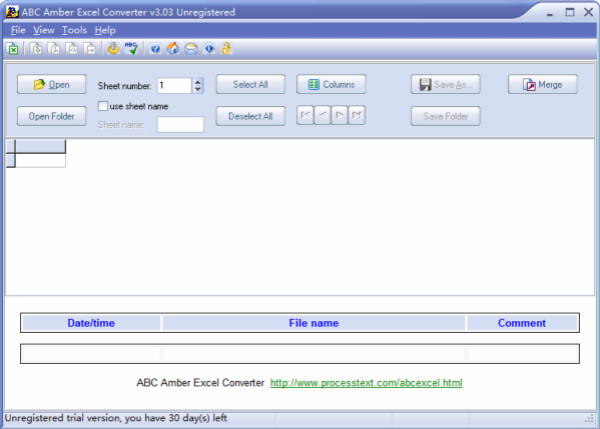 ABC Amber Excel Converter在主窗口中显示文件内容,并允许您选择单个行进行处理。您还可以指定工作表编号和使用工作表名称,以及包含或排除列。另外,您可以查看文件属性,并将应用程序最小化到系统任务栏区域。