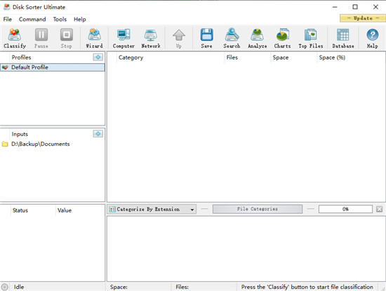 DiskSorter文件分类适用顺序供给不同类型的统计饼图和时间线图,它们可以展示磁盘空间运用量和每一个文件种别的文件数,文件扩大名,文件大小,文件一切者,建立,重置和最初拜候时间。