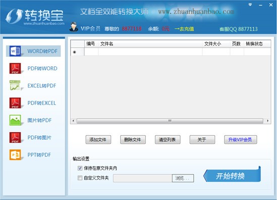 转换宝非常醒目地把其所支持的格式转换类型设置在了左侧状态栏中,包含平时能接触到的PDF、Word、Excel、PPT以及图像文件等格式,不过操作步骤并不多,需要从电脑本地文件夹中加入相关文件,然后通过队列来批量管理,另外可选是否把转换后文件保存在初始文件夹中,这点还是比较人性化的。