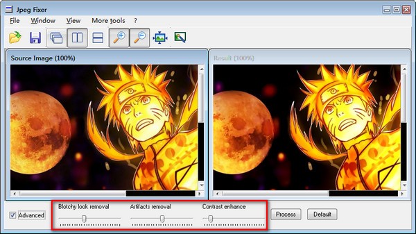 JPEG类格式也是图像文件中采用比较多的类型,只不过在大量文件传输或者处理的时候有概率会造成破损以及画面模糊的情况,这时候就能使用Jpeg Fixer软来处置,其供给一个界面显示初始图像以及输出图像的对比画面,在下方的参数条内控制好画面的亮度以及马赛克去除的级别,达到最自然且不违和的效果。