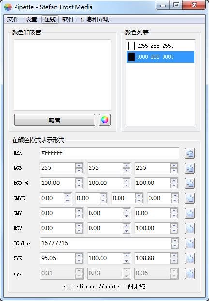3、取色成功后,枚举出RGB、CMY、CMYK、HSV、TColor和XYZ0数值,便利用户挪用;