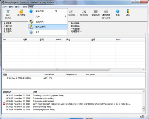 无线网络U发展到今天使用协议最多的加密协议依然是WPA2-PSK,密码复杂一点就很难获取使用,此次的EWSA Pro软件用来给普通用户们供给网络服务密码获取的关键操作,先对接区域网络情况做一次完整的扫描,如果有公共网络密码直接提供,其他的根据实际密码安全程度进行破除。