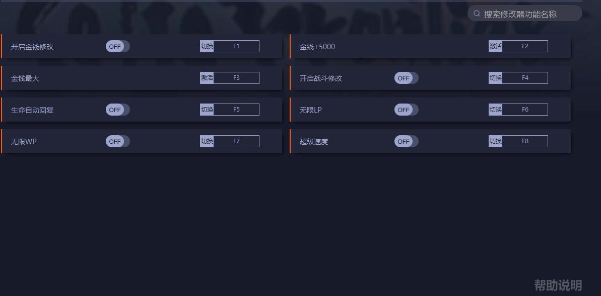 3.开启修改器各主初始项再使用各子修改项[无主初始项则不用开启][主初始项:如开启...修改]。