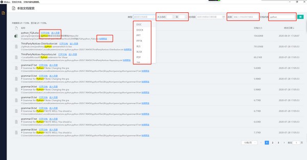 1、BBdoc拥有依照文档类型搜刮,今朝拥有word、pdf、Excel、压缩文件、csv、wps、txt等。