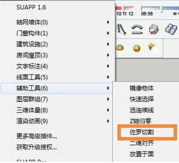 1、翻开草图巨匠并装载SUAPP插件,装载好后,东西栏里就会呈现扩大顺序,点开就是SUAPP了,我们接上去起头演示草图巨匠若何截面衬着。