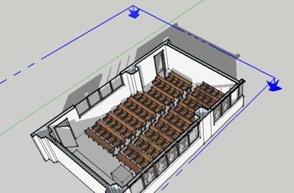 2、用su里自带的剖切东西开启切割,切割到所需求的定位,我们起头建造需求衬着的SU模型截面。