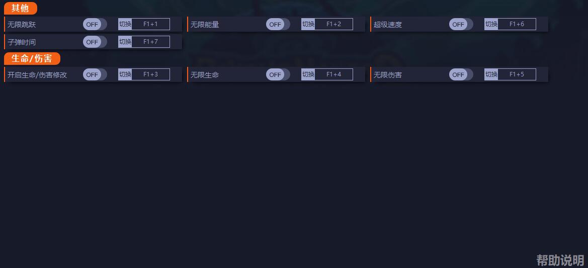 3.开启修改器各主初始项再使用各子修改项[无主初始项则不用开启][主初始项:如开启...修改]。