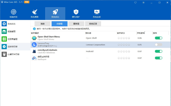 Wise Care 365 Pro是给全网用户带去的实用性系统清理工具,该软件与竞品软件最大的优势就是它毫无任何广告推广信息,并且也会专注于对目前本地系统的逐步跟进优化,多加提升目前便捷的操作技巧,后面也可以全面转向独立的系统清理服务次序,从硬件检测到内部垃圾数据文件清理全面覆盖。