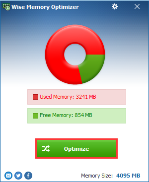 2.此刻点击优化,明智的内存优化器将帮忙您释放尽量多的内存。这么轻易,对吧?