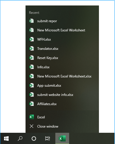启动 Word 或 Excel 后,若是右键单击义务栏操控键位,我们将看到跳转列表,此中展示了比来翻开的文件。单击列表中的记载可迅速翻开所选文件。普通与首页和翻开页面中的比来列表一样。