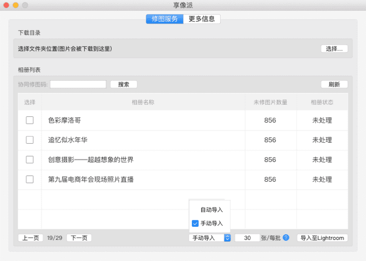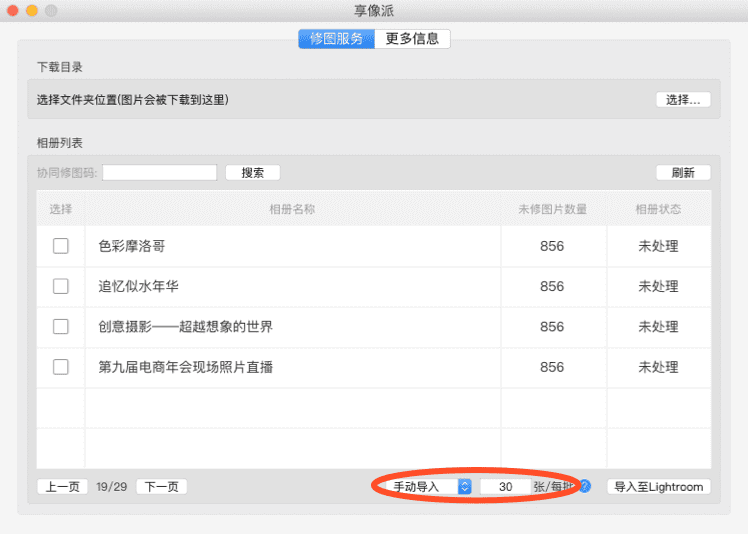 手动导入:依照设定的数目按批将照片导入至Lr,修完一批后需求在相册列表中从头勾选相册开启导入至Lr